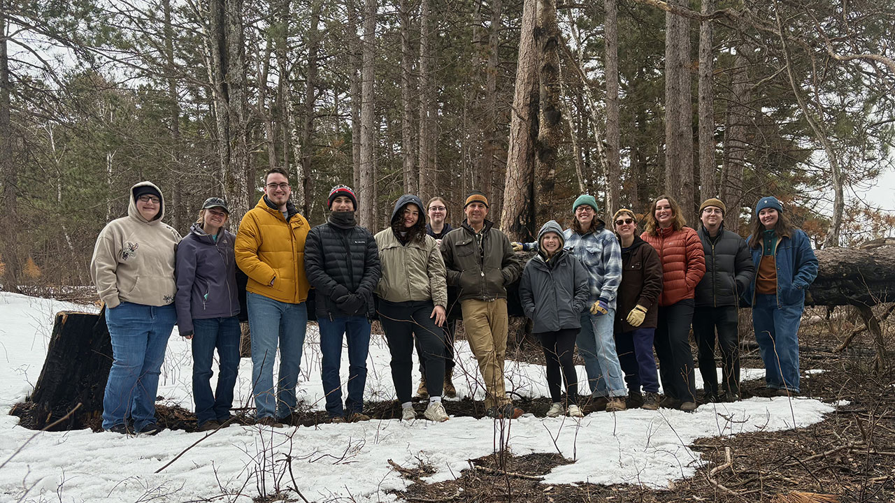 Students enrolled in Dr. Evan Larson’s Fire Ecology course in the Department of Environmental Sciences and Society participated in a four-day field trip, contributing to projects aimed at reintroducing low-intensity fire to the landscapes of Wisconsin and the Great Lakes Region. Students visited the University of Minnesota Cloquet Forestry Center where they piled and burned woody fuels along a burn break. This work helps reduce the intensity of future prescribed burns to enhance the benefits to the forest ecosystem and improve the safety of the burn crew.