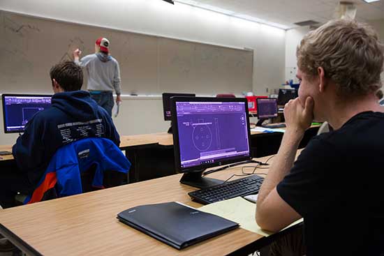 The drafting and design programs offered by the Department of Applied Engineering Technology Management at the University of Wisconsin-Platteville provides the chance to get involved in the production design process, using design tools to take ideas from thought to physical products. Everything manufactured requires a set of plans. Creating a set of plans is more than merely drawing and dimensioning the product; the plans need to be developed. This means the product needs to be designed so it is physically possible for it to be made and, in most cases, manufactured in large quantities. In these drafting and design classes, you will learn how to design products not only to meet the end user's needs but to become readily manufactured. To learn more, review the program requirements for the drafting technology minor.